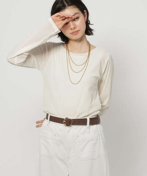ON・OFF使える万能トップス!軽くて快適、お手入れ楽ちんのシアーベロア■素材特性ベロア特有の上品な光沢と軽やかなシアー感が特徴。表面はしっとりなめらかな肌触り、肌に触れる面はつるっとした引っ掛かりのない着心地も魅力です。ご自宅での手洗いが可能なため、お手入れも簡単です。■デザインオフィスから休日のお出かけまで、シーンレスに活躍するシアーベロアプルオーバー。ニットやスウェットの下にレイヤードすることで、袖口や襟元からトレンド感を覗かせることができ、いつものコーデがぐっと新鮮に◎忙しい毎日のおしゃれをサポートする頼れる一枚です。■おすすめスタイリング上品なベロアの光沢とシアー素材感が、どんなボトムスも女性らしくアップデートしてくれます!デニムなどのカジュアルなボトムスと合わせたミックススタイルからスラックスと合わせた上品なスタイルまで、様々なアイテムと相性が良い万能アイテムです!※サンプルにて撮影をしておりますので、実際の商品とは仕様や加工・サイズ等が若干異なる場合がございます。※屋外の光や照明の当たり具合で、実物と色味が異なって見える場合がございます。詳細画像の色味をご確認ください。 なお、商品の色や質感を出来るだけ忠実に再現するよう心掛けておりますが、パソコンなどの環境により、実物と若干異なる場合がございます。※取扱いアイテムは店舗により異なる場合がございます。※写真を許可無くコピー・転用することは固くお断りします。