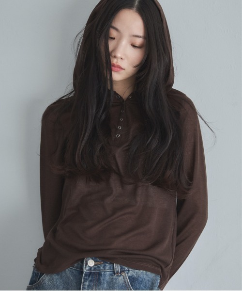 ◆Detailヘンリーネックトップスにフーディーデザインを落とし込んだ旬トップス。春から夏にかけて重宝する着心地の良いシアー生地で長く着回しが楽しめる一枚◎カジュアルなスタイリングにはもちろん、ジャケットなどと合わせてハンサムに着るスタイリングもおススメです。◆Fabric---------------------------------透け感:あり伸縮性:あり光沢:なし生地の厚さ:★★☆☆☆---------------------------------※汗や水、摩擦により他のものに色移りすることがありますのでご注意ください。濃色製品は色移りすることがありますので、他の物と分けて洗濯してください。※生産時期によりサイズや質感・色味に若干の個体差がみられる場合がございます。※商品画像は、光の当たり具合やパソコンなどの閲覧環境により、実際の色味と異なって見える場合がございます。予めご了承ください。※着用、お取り扱いの際は、商品についている品質表示とアテンションタグを必ずご確認ください。◆Information欲しいitemをお気に入り登録(♡マークをclick) ・お買いのがし対策…完売itemの再入荷やラスト1点の情報をお知らせ ・欲しいitemをお得にget…pricedownになったらいち早くお知らせ ・スムーズ検索…ZOZOのお気に入りアイテムページで簡単checkできるから、再検索不要♪