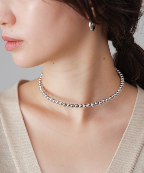 ■POINT 毎日のコーデに、さっとひとつ足すだけ。 均一サイズのワイヤーボールが連なるネックレスは、主張しすぎないのに、しっかりと華やかさを添えてくれる存在です。大きすぎず小さすぎない絶妙なサイズ感で、Tシャツやニット、ワンピースまで幅広くマッチ。留め具のない仕様で、着脱もとても簡単。忙しい朝でもストレスなく身につけられます。軽い着け心地なので、デイリー使いはもちろん、ぱっと印象を明るくしたい日にも活躍。大人女性の「ちょうどいい」を叶えるネックレスです。 ■FABRIC 合金とプラパールを使用。軽やかで扱いやすく、上品なツヤ感がコーディネートにさりげない品をプラスしてくれます。日常使いしやすい素材感も魅力です。 ★商品のお気に入り登録 登録すると、完売しても再入荷時に通知を受け取ることができます。 ほかにもお得な特典があるかもしれません♪ ★ブランドのお気に入り登録 新商品や再入荷などの情報を受け取ることができますので、是非ご登録ください♪
