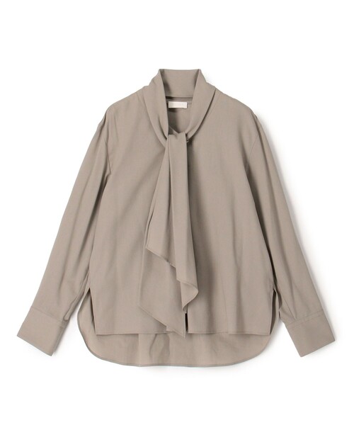 シャープな雰囲気の太めのボウタイが印象的なブラウス。 特殊な加工を施すことで、コットンの持つナチュラルな風合いを生かしつつ、上品なハリとレーヨンのような落ち感をプラスしています。 ボウタイはデザインのシャープさを生かすために一掛けか片結びにするのがおすすめ。 取り外しが可能なため、すっきりとしたVネックブラウスとしてもお召しいただけます。 一枚着からジャケットやジレのインナー使いまで、幅広いコーディネートに活躍してくれるアイテムです。 ■素材情報 厚み:普通 透け感:11 ホワイトのみ・ややあり 光沢:なし 伸縮性:なし 手洗い:可 裏地:なし ※商品の色味は、商品単体または素材アップ画像をご確認ください 2026SS商品 店舗にお問い合わせの際は、下記の商品番号をお申し付けください。 商品番号:11-01-62-01101