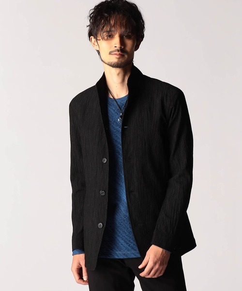 ■デザイン定番スタンドデザインのカヴァーオールジャケット。衿端にワイヤーを入れています。ねかしてラペルにしても収まる設定にしていますので、Vゾーンを綺麗に作れます。一重仕様の軽い仕上がりでシャツ感覚で着用出来ます。前身裏のみ付け、内ポケットを作っています。フロントの一番下の釦は止める設定していませんのでご注意ください。■サイズウエストシェイプを入れた綺麗なシルエットで、細身のサイズ感です。■素材薄いポリエステル素材にランダムなドット柄のエンボスプリントを施し、楊柳の様な細かいプリーツ加工を施した素材です。楊柳特有のオウトツ感ある組織にエンボスプリント柄が生地感に面白味を出しています。生地のシャリっとサラッとしたドライなタッチ、風合いは肌離れが良いので初夏まで長く着れます。伸縮性:あり生地の厚さ:少し薄手(プリーツ加工していますので透け感はありません)裏地:前身裏のみ(内ポケットあり)■注意点・衿裏に付属としてプラスチック線材を使用しています。局部的に繰り返し折り曲げたり、その部分にアイロンを当てないでください。■「メーカー品番/6164-5104」 同素材セットアップのパンツです。※画像の商品はサンプルです。実際の商品とは仕様・加工・サイズ・素材が若干異なる場合がございます。※掲載画像の商品の色味は、撮影場所や光の当たり具合などにより色味が異なって見える場合がございます。商品の色味は、生地アップの画像をご参照ください。また、お客様のお使いのPC・スマートフォン等のモニター環境などにより色味が異なって見える場合がございます。予めご了承の上ご注文ください。