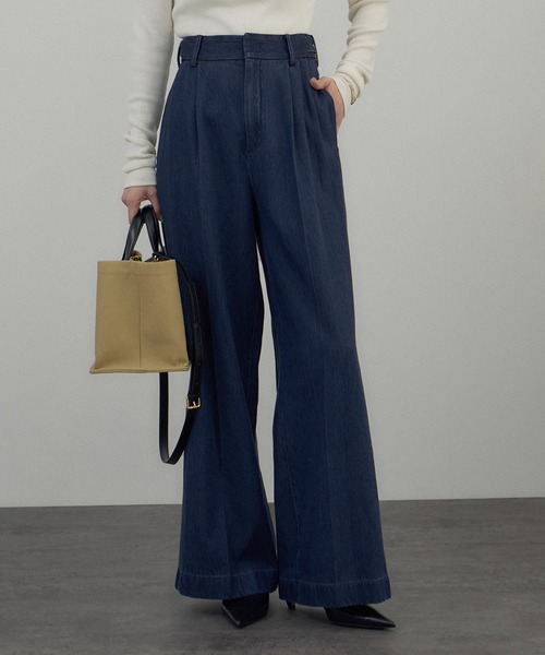 テンセル混デニム素材で抜け感と上品さを両立し、幅広いコーデに対応。程よいストレートのデニムパンツ■デザイン/シルエットワイドすぎない程よいストレートのマスキュリン2タックパンツ。キレイ目なデザインをデニム素材に落とし込み、上品な抜け感を演出します。■素材テンセル混デニムを使用し、程よい艶としなやかできれいなドレープ感が特徴です。■コーディネートジャケット合わせのシックスタイルやTシャツなどカジュアルコーデにも対応。シーズンを問わず着用できる素材感もポイントです。■デニムシリーズ一覧・商品番号:SHO36050 商品名:デニムテントシルエットステンカラーコート・商品番号:SHS36050 商品名:デニムSTYLE UP TACK PANTS■モデル身長:165cm 着用サイズ:M-----------------------------裏地:なし光沢感:ややあり透け感:なしポケット:あり伸縮性:なし生地の厚さ:普通-----------------------------