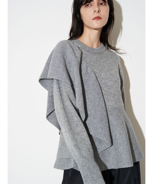 SHOULDER FRILL PEPLUM KT 昨年も大好評だったアシンメトリーのフリルディテールが華やかなプルオーバーニット。 肩回りをすっきりと着やすく昨年デザインからリモデル。 ウール混の糸を使用し柔らかな起毛感のある素材で、立体的なショルダーフリルが目を引くデザイン。 丈を後ろ下がりにしたペプラムデザインでおなかまわりとヒップをカバー。 袖はタックを取りフォルム感のある仕上がりに。 袖口にかけて細く仕上げており袖をたくし上げた着こなしもおすすめ。 首元はややハイネックでミニマルに仕上げモードな雰囲気に。 ▼その他のカラーはこちら ショルダーフリルペプラムニット(品番:512562621201) ・・・・・・・・・・・・・・・・・ 裏地:なし 透け感:なし 伸縮性:あり 生地の厚さ:普通 ・・・・・・・・・・・・・・・・・【 お買いものにおすすめの便利機能! 】▽商品のお気に入り登録完売カラーの再入荷時や、ラスト1点の時、セール開始時にお知らせします。 ▽ブランドのお気に入り登録新商品や再入荷、セール情報など、いち早くブランドのお得な情報を受け取ることができます。ぜひご活用ください。 ※実際にお届けする商品と仕様やサイズが異なる場合がございます。また生産の都合上、お届け時期が前後する場合がございます。