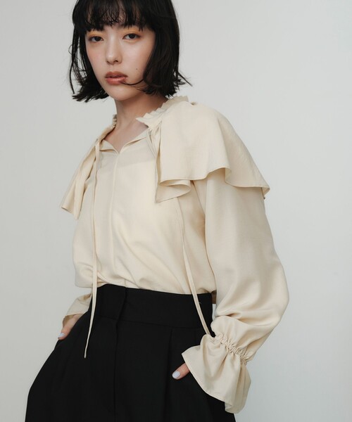 ケープ襟が華やかなオンオフ着られるブラウス■デザイン軽やかに揺れるケープ風の襟が特徴のブラウス。印象的なフリルの襟元はタックで構築されているので甘い印象になりすぎずクラシックな雰囲気に。■素材肌触りのよい落ち着いた光沢のフィブリルサテン生地を使用。手洗い可能でお手入れしやすく、きちんと見えるのにデイリーに着られるのも魅力です。■コーディネートジャケットやジレを羽織ってポイントの襟や袖口をのぞかせると華やかで洗練されたコーディネートに。スラックスを合わせればオフィススタイルにも着まわしていただけます。#春服,#春物,#夏服,#夏物,#26SS,#通勤,#オフィス,#オフィスカジュアル,#長袖#フリル============================裏地:なし透け感:ややあり伸縮:なし光沢感:ややありケア方法:手洗い可============================< EMMEL REFINES(エメル リファインズ) >Pleasure ~今を楽しみ、変化を楽しむ~EMMEL REFINESは変化していく時代やトレンドを恐れなく前向きに楽しみ、今に満足せず常に自分を更新していきたい、自分らしさを表現したい女性に向けたブランドです。女性の共感を大切に、時代にフィットした新しいスタイルを提案します。【注意事項】※画像の商品はサンプルです。※商品に「取り扱い上の注意書き」、「洗濯表示」がございます場合は、使用前に必ずご確認ください。※商品画像は、光の当たり具合やパソコンなどの閲覧環境により、実際の色味と異なって見える場合がございます。あらかじめご了承ください。※商品の色味の目安は、商品単体の画像をご参照ください。お問い合わせの際は、ユナイテッドアローズ カスタマーサービスデスクまで下記の品名/品番をお申し付けください。品名:EM フィブリルS ネックTK/FRL BL 品番:66116000008