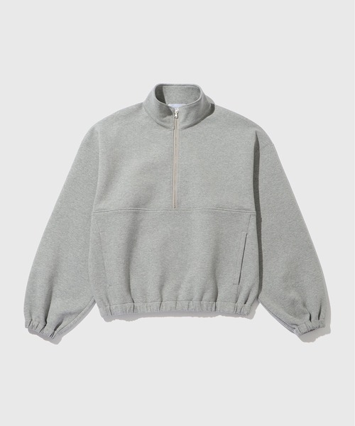【素材】表面をコットン、裏面にポリエステルを使用したハイブリッドな組み合わせのダンボールニット素材。スウェットライクな表情と柔らかな肌触りと裏の滑らかさが快適な着心地です。洗ってもすぐ乾き、適度に暖かみがあり季節の移り変わりにも大活躍するユーティリティ素材。【デザイン・シルエット】・ハーフジップタイプのダンボールニット地プルオーバー・レギュラーフィットのデザインで、スポーティな印象はありながら、肌触りや着心地に優れたトップスです・首元はジップを閉めてネック部分を立たせた着こなしと、ファスナーを下げて胸元からインナーをちらっと覗かせるレイヤードコーデなど、首元の印象を簡単にアレンジできます。・着脱が容易なハーフジップデザインで、スウエットながら上品さも兼ね備えています・裾と袖口はゴム仕様で風が通りにくい仕上げ