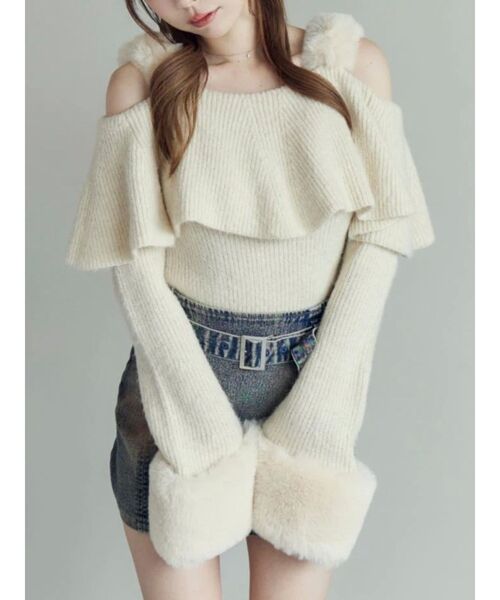 <商品紹介>畦の編み地が引き立つオフショルニットトップスです。伸縮性があり、やわらかい生地感で楽チンな着心地です。肩のストラップと袖口にはフワフワフェイクファーを使い、目を惹くデザインに仕上げました。ヘルシーな肌見せはセンシュアルムードを漂わせます。品の良さを感じさせるルックスは大人の洗練スタイルにぴったりです。少し長めの袖がキュートなアクセントに◎パンツともスカートとも相性抜群です。<スタッフレビュー>【158㎝・Fサイズ着用】大人気のオフショルトップスが今年も入荷厚手のニット素材なので秋から春まで使えるのも嬉しい大きめのファーがあざとかわいいデートや参戦服にぴったりです!!【162㎝・Fサイズ着用】フェイクファーが目をひくアイテム肩周りのフリルも女の子らしくて可愛い!もちもちしたニット素材で着心地も抜群です----------------------------------------------♡商品のお気に入り登録完売カラーの再入荷通知や、ラスト1点、セールの通知をお知らせ致します。♡ブランドお気に入り登録新商品や再入荷など、いち早くブランドの情報を受け取ることができます。----------------------------------------------※サイズは、実寸サイズを測っているため多少誤差がでる場合があります。※重量は目安として、参考にして下さい。※商品画像は着用イメージです。 光や角度により、実物と色味が異なる場合がございます。 商品の撮影はサンプルで行っている為、カラーやサイズ等に変更がある場合がございます。 ご覧のモニター環境により実際の商品と多少色味が異なって見える場合がございます。