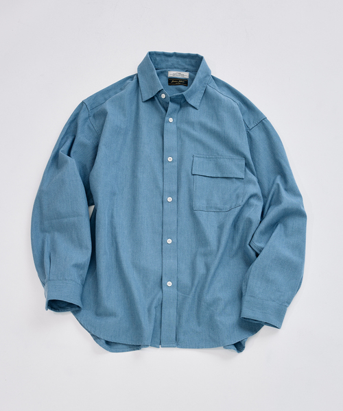James Fabric SOFT TWILL SHrelumeが提案するシャツレーベル「JAMES FABRIC」シリーズより、春の新作が登場。素材の配合にとことんこだわった、大人のためのデイリーシャツ。「オーセンティックなデザイン」と「上質な生地感」を両立させた、ジェームスファブリックらしいソフトツイルシャツです。流行り廃りのないスタンダードなサイズ感で、一枚着からジャケットのインナーまで幅広く活躍します。■4種の糸をブレンドした「絶妙な素材感」コットンとポリエステルをベースに、滑らかな落ち感を生む「レーヨン」と、微細な温かみをプラスする「ウール」をブレンド。4つの素材を掛け合わせることで、通常のコットンシャツにはない「ソフトな肌触り」と「上品な風合い」を実現しました。厚すぎず薄すぎない中肉厚の生地は、肌寒い春先からロングシーズン使える絶妙なウェイトです。■シンプルながらも光る「ディテール」左胸には、少し大きめの「フラップ付きポケット」を配置。ワークシャツのような実用的なディテールでありながら、比翼仕立てのようなミニマルなデザインに落とし込むことで、カジュアルすぎない洗練された印象に仕上げています。前立て(ボタン部分)の仕様に少し変化を加えることで、さりげないアクセントをプラス。決して派手ではありませんが、無地のシャツでも「普通」で終わらせない、落ち着いた大人の遊び心を感じさせる仕上がりです。ご家庭での手洗いが可能なイージーケア仕様も嬉しいポイント。洗いざらしでラフに着ても様になる、ワードローブの強い味方です。**********************裏地:なし伸縮性:なし光沢感:なし生地の厚さ:普通**********************【スタッフ着用コメント】《スタッフH》身長:170cm/体重:60kg/体型:中肉中背/普段サイズ:M/着用サイズ:Mサイズ感:程よくゆとりのある、ジャストめなシルエット。素材感:柔らかく、滑らかなタッチです。着心地:羽織りでもカーディガンやニットのインナー使いでも着回しやすいロングシーズン対応アイテム。**********************《画像についてのご注意》※照明の関係により、実際よりも色味が違って見える場合があります。またパソコン・スマートフォンなどの環境により、若干製品と画像のカラーが異なる場合もございます。※商品の色味は、商品アップ画像をご参照ください。《商品のお気に入り登録について》「カートに入れる」または「予約する」右側のハートマークを押していただくと、再入荷、残り1点、セールなどの通知を受け取ることが出来ます。本体:手洗い可能