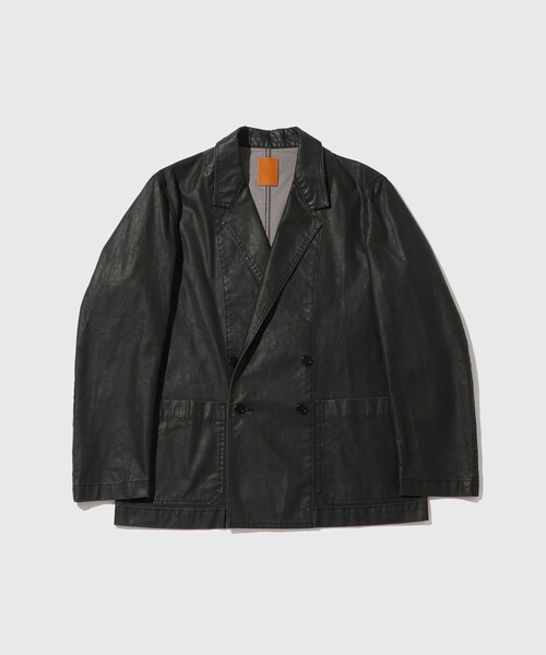 トルコのISKO社の高級素材を使用した、レザーのような風合いとデニムのような経年変化を楽しめるコーティング加工デニム。【素材】『ISKO』ISKO(TM)社は、世界35ヶ国・60拠点を展開しているデニム生地メーカーで業界内でトップクラスのシェアを誇ります。欧州のメゾンやグローバルブランドの生地を手掛け、世界に先駆けて最新の生地再生テクノロジーを開発。SDGsへの取り組みを先進的に行っています。今回はISKO社の素材でも ジェザー(JEATHER)”と呼ばれる独自のコーティング素材を採用しています。一般的なコーティング生地が染色とコーティングを同色で仕上げるのに対し、本素材は配色の生地上にコーティングを施すことで、表裏で異なる色のコントラストを楽しめるデザインに仕上げています。・ブラックコットンとポリエステルにストレッチ性のあるポリウレタンを混紡したライトツイル素材です。やや薄手でコシがあり、しなやかなストレッチ性が快適な着心地です。基布はグレーに染め、さらにブラックのコーティングを施すことで 、着用を重ねて地の色が出てきてデニムのような経年変化を楽しめます。・ブラウンコットンとポリエステルを混紡したパナマ織素材です。太番手の糸で平織りにしているので、ワークウエアのような無骨さがあるのが特徴です。基布は赤茶 に染め、さらにダークブラウンのコーティングを施すことで 、着用を重ねて地の色が出てきてデニムのような経年変化を楽しめます。【デザイン・シルエット】・ヴィンテージを現代に再解釈した羽織れるサックジャケット。・ダブルブレストで重心を低くした返り位置なので、気負わず程よい抜け感を楽しめる1着。・裏地なしの一重仕立てでサラッとコーディネートに取り込める気軽さがポイント。・同素材のジャケットと組み合わせたセットアップでのスタイリングもオススメ。