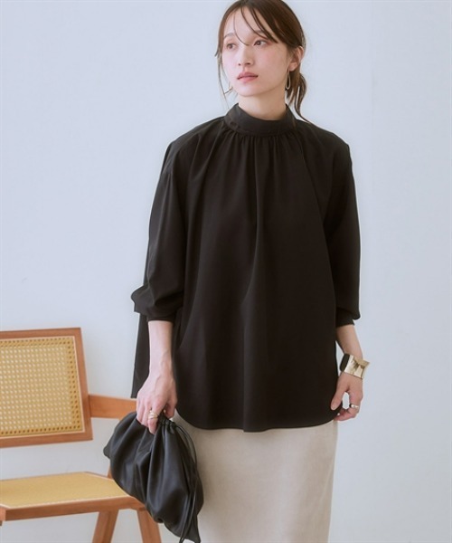 着回し力抜群!きれいめもカジュアルも大人っぽく決まるプチプラブラウス♪リボンアレンジがトレンド感を演出上品で程よいゆとりのあるシルエットできれい魅せ動くたびに揺れるシルエットがお洒落スタイルを高めつつしなやかな女性らしさを演出してくれる1枚ですとろみ感のある防シワ・吸汗速乾素材を使用してますのでオフィススタイルにも◎シンプルだけどトレンド感のある1枚です■デザインスタンドカラーとリボン使いで上品に!ほどよいゆとりで女性らしいフォルムに仕上げたブラウスリボンが前・後ろどちらでも結べるからコーディネートや気分に合わせてアレンジ可能。羽織の有り無しでリボン位置を変えるのもおすすめ◎袖はパフスリーブで上品な印象。プッシュアップすると抜け感がでてすっきりと着ることができます■素材とろみ感のある肌触りのいい素材を使用。吸汗速乾加工で爽やかな着心地落ち感のある薄手の柔らかな素材感で体のラインも拾いにくく、ドレープもきれい♪防しわ加工を施しているのでしわになりにくく、吸汗速乾加工でお家でのお洗濯(ネット使用)もOK!デイリー使いにおすすめです。※ほのかな透け感がございますので淡色はインナーの着用をおすすめします。■おすすめのスタイリングトレンド感のあるデザインにこだわりながらもシンプルなデザインだからオンオフ問わず使えます!女性らしいふんわりとしたシルエットが上品な印象でオフィスシーンやちょっとしたお出掛けにもぴったりきれいめなスラックスやフレアースカートとも好相性◎アクセサリーには華奢なネックレスやピアスを合わせるとより女性らしい雰囲気で着こなせます。長め丈デザインだからウエストインもアウトも好バランス◎デニムとあわせた大人カジュアルなスタイリングもおすすめ!プリントスカートやプリーツスカートをあわせればフェミニンな装いに♪様々なボトムとマッチする着回し力の高いアイテムです。<仕様>ポリエステル95%・ポリウレタン5%(織物)透け感:やや透ける ※色によって透け感が異なる場合があります。淡色カラーはベージュ系インナー着用をおすすめします。伸縮性:なし生地の厚み:やや薄い光沢感:ややあり裏地:なしポケット:なし季節:春・夏・秋・冬(冬はインナーアイテムとして活躍)シルエット:ややゆったり防しわ吸汗速乾<洗濯方法>洗濯機OK ネット使用■キーワードセレモニー、30代、40代、50代、60代、、おおきいサイズ、おしゃれ、お洒落、かわいい、たいけいかばー、ぽっちゃり、ゆったり、アラサー、アラフィフ、アラフォー、アレンジ、オフィス、カワイイ、シャツ、スタンドカラー、トップス、ファッション、ブラウス、プラスサイズ、ラージサイズ、リボンタイ、リボン付、レディース、ロング、仕事、吸汗速乾、吸湿速乾、大きいサイズ、春、秋、通勤、長袖、防しわ