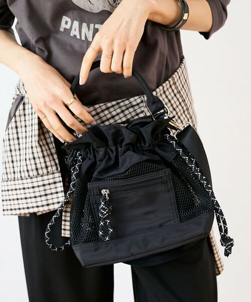 春夏らしいメッシュ素材を使用した2WAY巾着バッグ。 ●ポイント 口元はフリルデザインで程よい甘さをプラスした、カジュアルガーリーなアイテム。 異素材のコンビで程よく中身が見えにくく安心で、軽量でお出かけの必需品が入ります。 ※取り扱いについては、商品についている洗濯表示にてご確認下さい。 ※照明の関係により、実際よりも色味が違って見える場合があります またパソコン・スマートフォンなどの環境により、若干製品と画像のカラーが異なる場合もございます。 ※商品の色味は、商品アップ画像をご参照ください。 【注意事項】 ・画像の商品はサンプルです。 ・サイズ表記はあくまで目安となります。 実際の商品と仕様、加工が若干異なる場合があります。