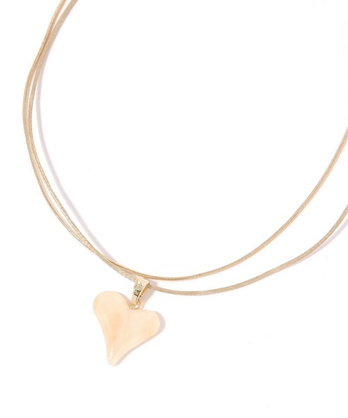 オンオフ使えるレイヤードアクセニュアンスのあるハートモチーフが大人可愛いネックレス。シンプルながらも目を引き、コード紐がデコルテラインにメリハリをプラスしてくれます。セット使いはもちろん、単品使いや他のアクセサリーとの重ね付けを楽しむのもおすすめです。※サンプルにて撮影をしておりますので、実際の商品とは仕様や加工・サイズ等が若干異なる場合がございます。※屋外の光や照明の当たり具合で、実物と色味が異なって見える場合がございます。詳細画像の色味をご確認ください。 なお、商品の色や質感を出来るだけ忠実に再現するよう心掛けておりますが、パソコンなどの環境により、実物と若干異なる場合がございます。※写真を許可無くコピー・転用することは固くお断りします。