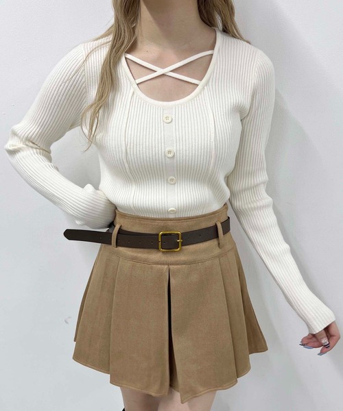 クロスストラップがめずらしいリブニットトップスデコルテをきれいに見せてくれるVネックに、華奢なストラップを重ねたデザインが女の子らしいポイントに!細リブ素材なのですっきりとしたシルエットながらやわらかな印象もキープ。ミニボトムで韓国っぽく着こなすのがおすすめです。1枚で抜け感のあるガーリースタイルが完成します♪▼便利なお気に入り登録▼商品のお気に入り登録で、再入荷の通知・ラスト1点・お得なセールの通知を受け取ることができます。ブランドのお気に入り登録で、新商品や再入荷など、さらにお得な通知を受け取れます。《Attention》・撮影はサンプル品を使用しており、実際の商品とは仕様や加工・サイズ等が若干異なる場合がございます。・撮影場所や照明の照射・角度、お使いのモニター環境により色味や仕様、加工、カラーが若干異なる場合がございます。・商品によっては1〜3cm程度の採寸誤差がある場合がございます。・移染等防止のため水や汗で濡れたまま放置することは避けて頂き、濃色アイテムは単体でのお洗濯をお願い致します。・素材臭がある場合は陰干しをお願いいたします。・アテンションタグを必ずご確認の上ご使用下さい。