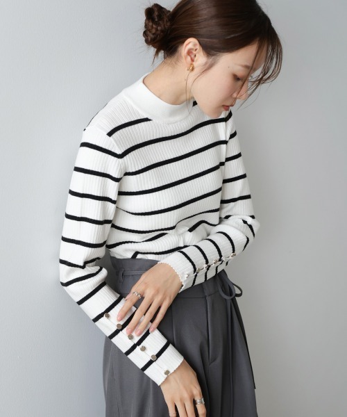 ●Bab●■POINTさりげないプチハイネックと、袖口のボタンディテールが大人っぽさを引き立てるリブニットトップス。低めのハイネックなので、首まわりがすっきり見えて、オフィスでも使いやすい上品な印象に仕上がっています。身体のラインを拾いすぎないリブ編みで、1枚着るだけで細見え効果も◎袖のボタンがアクセントになり、シンプルな中にも“きちんと感”と“かわいさ”が共存した万能トップスです。カラー展開も豊富なので、ベーシックにも差し色にも幅広く楽しめます。■FABRICレーヨン50%をブレンドした、しなやかで柔らかな肌ざわりのニット素材。ポリエステル・ナイロンが加わることで軽さと伸縮性があり、長時間着ても疲れにくい快適な着心地です。ほどよく厚みがありつつ、インナーとしても使える万能な素材感なので、季節を通して活躍します。■COORDINATEスラックスやタイトスカートと合わせれば、すっきり見えするきれいめ通勤スタイルが完成。ジャンスカやキャミワンピのインナーにもぴったりで、袖ボタンがさりげなくアクセントに。デニムと合わせれば大人カジュアルに、フレアスカートならやわらかいフェミニンムードになります。カラー違いで揃えると、シーンや気分で表情を変えられる万能アイテムです。…………………透け感:なし裏地:なし洗濯:クリーニングネットをご使用ください保管方法:型崩れ防止のためたたみの状態で保管してください。またアイロンの際はボタンに当てないようご注意ください。…………………※撮影環境により、多少実際のカラーと異なる場合がございます。また、携帯やスマートフォン、パソコンなどの画面上と実物では多少色が異なって見える場合がございます。ご了承下さいませ。※画像の商品はサンプルのため、実際の商品と若干仕様が異なる場合がございます。※濃色品は、過度な摩擦や濡れた状態での摩擦により、色落ち・色移りをする恐れがあります。※この商品は、素材の特性上、洗濯の際に多少の伸びや縮みが生じる恐れがあります。洗濯後は形を整えてから干してください。※その他お取り扱いに関しましては、商品に付属のアテンションタグをご覧ください。★商品のお気に入り登録再入荷やラスト1点のお知らせ、セール情報などお知らせを受け取ることができます!★ブランドのお気に入り登録新商品や再入荷などのお得な情報を受け取ることができますので、是非ご登録ください。★Bab公式Instagramアカウント【bab.showroom】で最新情報をチェック!
