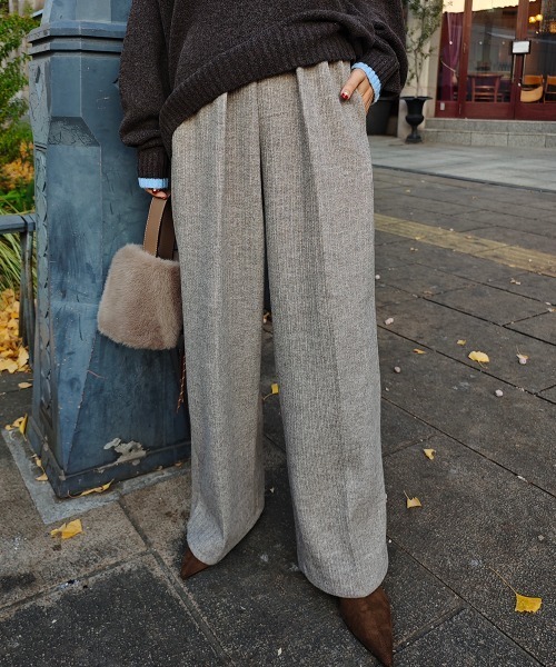 【point】綺麗見えも叶えたTR素材のイージーパンツウエストゴム仕様でリラックス感ありながら、絶妙なワイドシルエットで上品な印象に。センタープレスできちんと感もプラスしてくれます。ミックス調のカラーが深みのある表情に。裏起毛なので暖かく着用していただけます。シンプルなデザインなのでシャツ、ブラウスやニットも合わせやすく、お出かけからデイリーまで幅広く活躍します冬のスタイリングに欠かせない、リラックス感ときちんと感を両立したパンツです透け感:なし厚さ:厚手伸縮性:ややあり裏地:なし【ブランド紹介】esutoreja / エストレジャ「Cool」×「Sexy」 都会的なカッコいい大人の女性像を表現し、海外モデルのようなクール&セクシーを追求したファッションブランド。スタイルアップアイテムはもちろん、ブランド本来の着やすさや動きやすさも取り入れたアイテムも提案。≪お買い物をよりお楽しみいただくために♪≫・商品のお気に入り登録完売カラーの再入荷通知や、完売間近の通知、セールの通知を受けることができます。・ブランドのお気に入り登録新商品や再入荷など、いち早くブランドのお得な情報を受け取ることができます。カラーバリエーション/レイヤード/スタイルアップ/クール&セクシー/体系カバー/リラクシー/トレンド/旬/海外風/海外ファッション/ワンピース