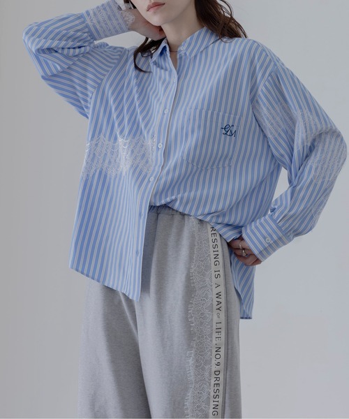 Pre-Spring Collection〈繊細なレースが上品に着映えするストライプシャツ〉ストライプ柄にレースラインを組み合わせた存在感のあるデザインシャツ。ベーシックなシャツシルエットにレースディテールをプラスすることで、程よくフェミニンな印象に。軽やかな素材感なので一枚着としてはもちろん、羽織としても活躍します。修正点:第二ボタンの位置が高くなり、袖丈+6cm、衿巾+1cmになります。●季節:春、秋●裏地:なし●ポケット:なし●伸縮性:なし●チクチク感:なし●透け感:なし【スタッフ着用コメント】《スタッフ名:Sakura》年齢:20代/身長:160cm/体型:普通/普段サイズ:Mサイズ感:ゆとりのあるサイズ感で丈はヒップが隠れるくらいです。素材感:清涼感のある薄手の素材で、少しはり感のあるブロード素材です。※画像の商品はサンプルです。実際の商品と仕様や加工、サイズが若干異なる場合がございます。※撮影場所やイメージにより、実際の商品と色味が若干異なる場合がございます。※サイズに若干の個体差が生じる場合がございます。予めご了承下さい。【オススメの機能について】《商品のお気に入り登録》により、完売カラーの再入荷通知、ラスト1点の通知、セールの通知も受け取ることができます!《ブランドのお気に入り登録》により、新商品や再入荷など、イチ早くブランドのお得なセールやクーポン配布などの情報を受け取ることができます!お得な情報をGETして頂く為にも、是非ご活用くださいませ