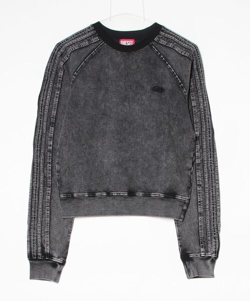 デニムライクなスウェット地で仕立てたスリムフィットのプルオーバースウェット「F-ALPY」。染色やウォッシュ加工で色落ち感を出したスタイリッシュな一枚です。肩から袖にかけてのバンドディテールがデザインポイント。コットンストレッチ素材を採用した肌触りの良い風合いで、着心地快適なアイテムです。