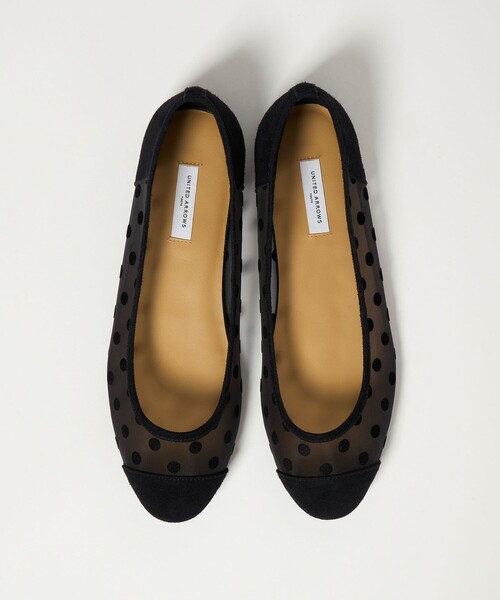 チュールにドットをのせた軽やかなバレエシューズ■デザインかわいらしいドット柄をワントーンでまとめ、上品でエレガントな印象に。パイピング部分には天然皮革を使用し、足にしなやかに馴染むのも魅力です。チュール素材が、軽やかで抜け感のある足元を演出します。■素材アッパー:天然皮革 /ナイロン■コーディネートワイドパンツの裾からのぞく、ドット柄がさりげないアクセントに。タイツやカラーソックスにあわせて、ロングシーズン楽しめます。【注意事項】※商品に「取り扱い上の注意書き」、「洗濯表示」がございます場合は、使用前に必ずご確認ください。※商品画像は、光の当たり具合やパソコンなどの閲覧環境により、実際の色味と異なって見える場合がございます。あらかじめご了承ください。※商品の色味の目安は、商品単体の画像をご参照ください。※シューズの重量は、シューズ本体のみ両足の重量となります。箱や付属品は計測に含まれません。※商品に不良が無い場合、包装紙および箱の破損がございましても発送いたします。あらかじめご了承ください。※画像の商品はサンプルです。実際の商品と色味、仕様、加工、サイズ、素材等が若干異なる場合がございます。※工場の生産の都合上、納期が変更になる場合がございます。発送日の前後については予めご了承ください。※入荷状況により、お客様への発送が店頭販売より遅れる場合もございます。店舗へお問い合わせの際は、全国のUNITED ARROWS各店舗まで下記の品名/品番をお申し付けください。品名:UA DOT BALLET 品番:17316000030