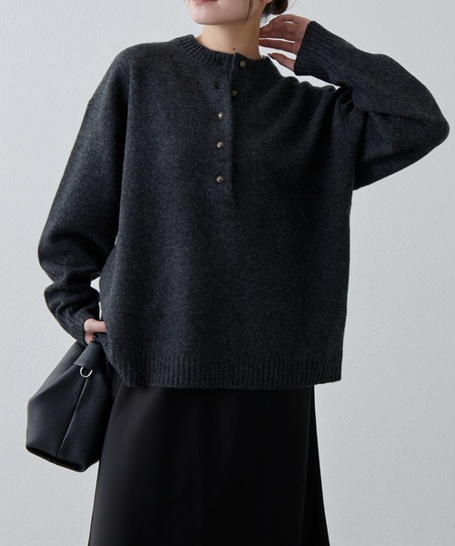 《 Lui's FEMME(ルイス ファム)オリジナル25AWコレクション 》ウォッシャブルウールフロントボタンニット【design point】ふんわりとした毛足感のある素材を使用したニットプルオーバー。シンプルながらも存在感のあるボタンデザイン。ノーカラーできちんと感をプラスし、カジュアルにも上品にも馴染むアイテムです。フロントのボタンにはアンティークゴールド刻印ボタンを採用。遊び心のあるデザインで、さりげなく目を惹くアクセントに。ゆとりのあるシルエットで身体のラインを拾わず、リラックス感のある着心地を叶えます。【styling point】デニムと合わせてラフに着こなせば、映えてカジュアルなデイリースタイルに。タイトスカートやスラックスと合わせれば、ボタンデザインとゴールドボタンが引き立ち、キレイ目、モードな雰囲気を演出。ボタンを少し開けて、インナーにタートルネックを重ねて首元からのぞかせると、冬らしいレイヤードスタイルが完成。シンプルなボトムと合わせても、ゴールドの刻印ボタンの存在感でコーデが決まります。…………………………………透け感:なし伸縮性:あり裏地:なし洗濯:手洗い可…………………………………【ブランド】Lui's FEMME(ルイス ファム)凛とした芯のある女性。 自立した、女性のワードローブをイメージ。洗練されたかっこよさの中に、女性らしさ・かわいさ・セクシーさを持つ。自分自身のスタイル(自分らしさ・個性・生き方・感覚...)を表現できるひとつの手段としての服。肩肘張らない、心地よいリラックス感のあるスタイルを上質な素材、優雅なシルエットで提案。 《商品画像について》ご覧頂いている商品の写真につきましては、できるだけ実物の色に近くなるように努めておりますが、お使いの環境(モニター、ブラウザ等)の違いにより、色の見え方が実物と若干異なる場合がございます。 予めご了承ください。《予約商品について》・こちらの商品はサンプルでの撮影・計測となっております。実際の商品とは、商品の一部仕様が変更になる場合がございます。・撮影サンプル品はブランドタグがついておりません。製品にはタグがつきますので、製品の表に縫い糸が見えたり、着用時にタグが透ける場合がございます。・サンプルの為、混率の詳細が確定しておりません。確定次第、記載いたします。・工場の生産の都合上、納期が変更になる場合がございます。発送日の前後についてはあらかじめご了承ください。・入荷状況により、お客様への発送が店頭販売より遅れる場合もございます。・店頭に陳列していた商品も含まれる場合がございます。《ハートをタップして商品のお気に入り登録》登録カラーの商品の「残りわずか」「再入荷」「値下げ」通知を受け取ることができます。各ショップアプリにてブランドフォロー 新商品などの入荷情報、最新のニュースやお得な情報を受け取ることができます。