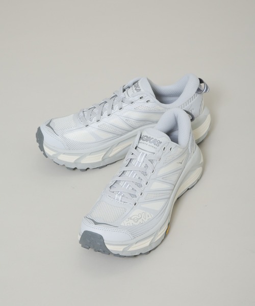 【2026 SS】 HOKA(ホカ) 『グリップ性と反発性が優れたフラッグシップモデル』 HOKAのブランドカラーがアクセントのグリップ性と反発性が優れたフラッグシップモデル。HOKAのルーツである山をテーマに、トレイルランニングシューズ「MAFATE SPEED 2 (マファテスピード2)」を現代のライフスタイルにフィットするデザインにアップデート。ルーツであるトレイルで必要なパフォーマンスを発揮するテクノロジーはそのままに、HOKAらしいボリュームシルエットに鮮やかなカラーを配した、コーディネートのアクセントになるデザインです。 ■デザイン ・あらゆる距離にわたってサポートとクッションを提供するために開発されたトレイルランニングシューズ ・縫製箇所を減らした軽量ピードフレーム構造 ・深めのアクティブフットフレームが踵をしっかりとホールド ・HOKAらしいボリュームシルエット ・ルーツであるトレイルで必要なパフォーマンスを発揮するテクノロジー ・クッション性や踵をしっかりとホールドする、深めのアクティブフットフレーム ・スムーズなランをサポートするメタロッカー構造 ・様々な地形に対応する深さ5mmのラグを備えたアウトソールが優れたグリップ力を発揮 ■カラー展開 ・淡いカラー配色がスタイリングに合わせやすいグレー ■メーカー品番:1126851-CYLB ■メーカーカラー名 【グレー】COSMIC GREY / ALABASTER HOKA(ホカ) 2009年、創業者のジャン・リュック・ディアードとニコラス・マーモッドによって誕生。 2人はランニングシューズの本質を見直すことで、楽に下り坂を走るという単純な問題の解決に乗り出しました。 彼らは見事に問題を解決し、ウルトラマラソンファンを狂喜させました。しかし、ランニングの普遍的な問題を解決するとは予想していませんでした。 実は、苦痛は50マイルの下り坂を走ることだけでなく、あらゆるランニングにありました。 ジャン・リュックとニコは、すべてのランナーを解放したのです。 「HOKA ONE ONE(ホカオネオネ)」とは、マオリ族の言葉で、Time to Fly(さぁ、飛ぼう)を意味します。 ランニングをはじめ、スポーツのある生き生きとしたライフスタイルを送るすべての人々の可能性が無限に広がるよう、私たちは日々進化を続けています ■取扱方法 汚れた場合、泥や砂などの汚れをよく落とし、中性洗剤を薄めた水またはぬるま湯でよく濡らしてから、柔らかいブラシなどで洗います。汚れが落ちたら、水洗いで十分にすすぎ、形を整えて風通しの良い所で陰干しします。乾燥が不十分な場合、カビや不快臭などの原因となります。濡れた場合、乾いた布などで水分をふきとり、インソールがあれば取り外した状態で吸水性のよい紙をつめて形を整え、風通しの良い所で陰干しして下さい。直射日光やストーブ、ドライヤー乾燥機等で強制的に乾かさないで下さい。変形や型崩れ、ソール剝離などの原因になります。ご使用後は、風通しの良い所で陰干しして下さい。ご使用後に消臭、防カビスプレーなどをご利用いただくと、不快臭やカビの発生を抑えます。風通しの良い、湿度変化の少ない場所で保管して下さい。また箱やビニール袋で密閉して保管すると、カビなどの原因になります。 ※サンプルにて撮影、採寸を行う為、実際にお届けする商品と仕様やサイズが異なる場合がございます。予約時は生産の都合上、お届け予定時期が前後する場合もございますので、予めご了承下さい。 ※光の当たり具合や撮影環境により色味が異なる場合がございます。正しい色味はスタジオ画像の色味をご参照ください。 ※サイズスペックは、ブランドの採寸方法で表記している場合がございます。予めご了承ください。 ▼商品のお気に入り登録 お気に入りアイテムの再入荷や残り1点の通知を受け取ることができます。 ▼ブランドのお気に入り登録 新作アイテムの入荷や人気アイテムの再入荷、タイムセールやクーポンなど、 いち早くブランドのお得な情報を受け取ることができます。