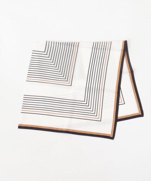NOLLEY’S sophi ◆Point ・モダンな幾何学模様が目を引く、シルク100%のプリントスカーフ ・繊細なラインで描かれた幾何学模様は、シンプルながらも奥行きを感じさせる、唯一無二の存在感を放ちます。 ・モノトーンを基調としたカラーリングに、アクセントとして加えられたブラウン・ブルーが、上品で落ち着いた印象を与えます。 ・首元はもちろん、バッグに結んだり、ヘアアクセサリーとして使ったりと、アレンジ次第で様々な表情を見せてくれます。 ●お取扱い上のご注意● ※アテンションタグを必ずご確認の上、着用又はお取り扱い下さい。 気になる商品は、お気に入り登録がオススメです! クーポン情報、入荷情報が、通知されるようになります。 ※店頭及び屋外での撮影画像は、光の当たり具合で色味が違って見える場合があります。 商品の色味は、スタジオ撮影の画像をご参照下さい。 ※商品画像に関しては出来る限り忠実に表示出来るよう努めておりますが、 お客様がご利用のモニターの設定及び特性により、実際の商品と比較し色味に若干の誤差が生じる場合があります。