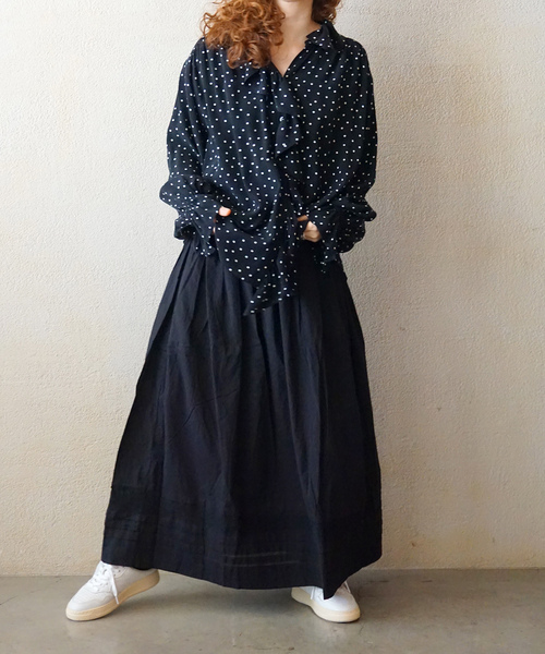 【2025AW】journal standard luxe◆【SOIL】CAMBRIC WITH LACE GATHERED SKIRTメーカー品番:NSL25624弊社カラー:メーカーカラー(001):BLACK(010):9000 WHITE弊社サイズ:メーカーサイズ(002):00260s CAMBRIC PLAIN WITH LACE"シリーズのギャザースカート。無地の平織り生地にCAMBRIC(キャンブリック)仕上げ(熱と圧力でツヤを出す仕上げ)を施した薄手のコットン生地を使用し、シーズンを問わず着回せる素材感で、柔らかな肌触りが魅力のシリーズです。ウエストからふんわりと広がるギャザーが、女性らしい柔らかなシルエットを演出。ウエストはゴムと紐のイージー仕様で、締め付けのない履き心地が魅力です。裾にあしらわれたレースとタックがポイント。控えめながらも程よい甘さをプラスし、ナチュラルなスタイルにも馴染みます。【SOIL/ソイル】英語で「大地、土」という意味をもつSOIL/ソイル。 天然素材を多く使用し、着心地の良さにこだわり、着回しがきく ナチュラルテイストのアイテムを展開しています。 主にインドを生産拠点とし、オリジナルの素材作りから インドならではの手作業を多くのデザインに取り入れています。 流行に左右されることの無い独自の世界観で age lessな物作りを目指しています。※取り扱いについては、商品についている品質表示でご確認ください。※照明の関係により、実際よりも色味が違って見える場合があります。またパソコン・スマートフォンなどの環境により、若干製品と画像のカラーが異なる場合もございます。※商品の色味は、商品アップ画像をご参照ください。モデルサイズ:身長:163cm 着用サイズ:2本体:手洗い可能
