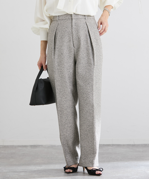 【2026SS】IENAインポートライクな高級感をもつツイード素材を使用した一本。一見ザックリとした縦横の織り目に見えながら、実はしっかりと密に織り上げられており、素材の美しさと強さを兼ね備えています。センタープレスを施したストレートシルエットで、きれいめな印象に。ウエスト後ろはゴム仕様のためストレスが少なく、きちんと見えしながらも快適に着用いただけます。素材の個性を引き立てた、上質さが際立つツイードパンツです。【&NAVY】コンセプトは、Intelligence。綺麗なフォルムと機能性、そして特別な可愛らしさと多様性を大切にしてきました。今年のテーマはComfort Ceremony──知性を纏い、無理をしない。快適で、頼れるネイビーを提案します。汎用性は、すでに当たり前となったセレモニー服。今年求めるのは、きちんと感を保ちながら長い一日を安心して過ごせる快適さ。ベーシックと遊びのバランスをデザインしながら、IENAのニュートラルカラー「NAVY」を中心にTPOを問わず選びたくなるコレクションです。※シリーズもございます。&NAVY シアーピンタックスカート (品番: 26060900693010 ) &NAVY ジョーゼットサイドゴムタックパンツ (品番: 26030900695010 ) &NAVY メランジツイルギャザーワンピース (品番: 26040900697010 ) &NAVY ジョーゼットペプラムブラウス (品番: 26051900694010 ) &NAVY オーガンジージャガードタックブラウス (品番: 26051900696010 ) &NAVY シアーボウタイブラウス (品番: 26051900692010 ) &NAVY ツィーディーサッシュジレ (品番: 26010900691010 ) &NAVY ツィーディーダブルジャケット (品番: 26010900690010 )**********************透け感:なし裏地:あり伸縮性:なし光沢感:なし生地の厚さ:普通**********************※取り扱いについては、商品についている品質表示でご確認ください。※こちらの商品は、IENAでの取り扱いになります。直接店舗へお問い合わせの際はIENA店舗へお願い致します。※照明の関係により、実際よりも色味が違って見える場合があります。またパソコン・スマートフォンなどの環境により、若干製品と画像のカラーが異なる場合もございます。予めご了承ください。※商品の色味は、商品アップ画像をご参照ください。本体:ドライクリーニング