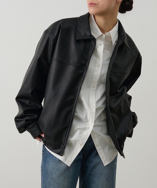 【キレイめスタイルとも相性抜群のフェイクレザーブルゾン】上品な光沢と程よいシボ感が特徴のフェイクレザー素材を使用したフェイクレザージップブルゾンです。レザーライクな存在感を持ちながらハードになりすぎないデザインで、きれいめスタイルにも自然に馴染みます。軽くて扱いやすくデニムやスラックスなど幅広いボトムと好相性◎羽織るだけでコーディネートを引き締める主役級の一着です。内側にもポケットがあり機能性も抜群。フロントのジップや袖口のスナップボタンもポイントです。【商品ポイント】・上品見えするフェイクレザー素材・カジュアルからきれいめまで対応・ジップ仕様で着脱が簡単----------------------------------------------------■商品特徴洗 濯 方 法 :家庭洗濯不可(ドライクリーニング可)裏 地 :あり透 け 感 :なし伸 縮 性 :なし光 沢 感 :ややあり生地の厚さ:普通----------------------------------------------------■素材表地: 合成皮革裏地: ポリエステル100%----------------------------------------------------※着用、お取り扱いの際は、商品についている品質表示とアテンションタグを必ずご確認下さい。※商品タグに記載されている商品名がWEBでの表記名と異なる場合があります。※実際の商品と仕様、加工、サイズが若干異なる場合がございます。※照明の関係により、実際よりもやや明るく見える場合がございます。またパソコンなどの環境により、若干製品と画像のカラーが異なる場合もございます。予めご了承くださいませ。【お気に入り登録】してお得な情報をCHECK!!・「商品のお気に入り登録」で再入荷通知や、ラストの通知、セール通知も受け取ることができます。・「ブランドのお気に入り登録」で新商品や再入荷など、お得な情報を受け取ることができます。