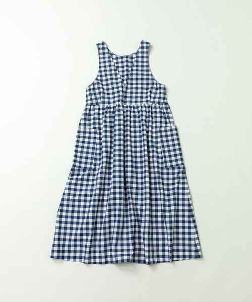 凹凸のある、天然素材ならではのネップ糸で織り上げたナチュラルな風合いのワンピース。 絶妙な大きさの格子柄で程よい甘さのギンガムチェック(ブルー)とスタイリングに馴染む千鳥チェック(その他)、清涼感がありながらも落ち着いたネイビーのオリジナルテキスタイルを作りました。適度にハリがあり、シルエットを保って肌離れするドライタッチな着心地がこれからの季節にぴったりです。クルーネックと深めのVネックの前後で着用可能な2WAY仕様でスタイリングを変えて着ていただけます。ウエスト部分にギャザーを入れて立体感を出し、ふわっとしたシルエットと長めの丈で着映えする一枚。大きめのポケットでナチュラルになりすぎず、ワークな気持ちを忘れずに。アームホールを広めにデザインすることで、着られるインナーの幅が広がります。エプロンのような雰囲気で、グッドガールな印象に。インナーにロゴの入ったTシャツや無地カットソーを合わせて普段使いにはもちろん、そのまま上からさらっとカーディガンを羽織ったり、フリルのブラウスで合わせるとちょっとしたお出かけやお食事の場にも。同素材のジャケット(5001JK004261)とのセットアップスタイルもおすすめです。パンツ(5001PT005261)もご用意しております。 -------------------- 透け感:なし 裏地:なし 伸縮性:なし 光沢感:なし ポケット:あり -------------------- 【素材の特性・お取り扱いの注意】 ・取り扱いの注意については取り扱い表示をよくご確認の上、着用をお願い致します。 ・ネップやスラブなどの糸ムラが特徴の生地を使用しています。天然素材ならではの風合いをお楽しみ下さい。 ・汗や雨等で濡れた場合、摩擦などにより色落ちし、他の衣料に移染することがありますのでご注意下さい。 ・直接、日光や蛍光灯に長時間当てると変色する可能性がありますので、保管時はご注意下さい。また、色褪せ変色は経年変化によるものですのでご了承下さい。 ※撮影画像は、光の当たり具合やモニターの環境により色味が違って見える場合があります。あらかじめご了承下さい。 ※一番最後にある前横後ろの詳細画像が実際の色味に近い写りです。 ※ブルーの画像はサンプルを着用しています。お届けする実際の商品と仕様、加工、サイズが若干異なる場合があります。 サンプルの画像からウエスト切り替え位置が2cm下がり、総丈が3.5cm長くなります。Vネックの重なり部分が2.5cm右側にずれ、中心で重なります。