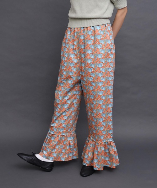 春らしいポピーのリバティ柄をアイアムアイらしいデザインに落とし込みました。裾の幅広フリルが華やかなパンツはきれいなシルエットで甘くならずに着ていただけます。ウエストはゴムとひも仕様で履きやすさも◎Liberty【Clementina クレメンティナ】流動的なラインが特徴的なアール・ヌーボー期を代表するポピーが群生しているデザイン。※着用商品はサンプルです。実際の商品と仕様、加工、サイズが若干異なる場合がございます。※光の関係で実物の商品の色味とは若干異なる場合がございます。実際に近い色味は詳細画像をご参照下さい。※取り扱いの注意については取り扱い表示をよくご確認の上、着用をお願いいたします。【素材の特性、お取り扱いの注意】・この製品を洗濯する際には多少縮む場合がありますので、形を整えてから日陰で干して下さい。・タンブラー乾燥はお避けください。塩素系漂白剤はご使用にならないでください。色が変わることがあります。・(プリント製品)この製品は特殊加工品です。永久的なものではなく、もまれたり、擦られたりすると脱落しやすく、また、水洗いをくり返すことにより多少薄くなります。取扱いの際は次の点に十分ご注意下さい。●水洗いの際は、取扱い絵表示を確認の上お願いします。IAMI IN FACT...アイアムアイインファクトわたしはわたし1年のうちすこしだけおとこのになれたらいいのにでもふと思い出すフリルやピンクにあこがれた小さいころのじぶんいくつになっても消えることのない少年少女の心を大切にチャーミングボーイ ドリーミーガール