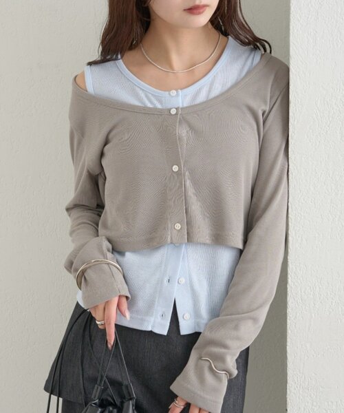 一枚でレイヤードが完成する、配色デザインロンT ●デザイン ・配色のインナーを合わせたレイヤードトップスで、簡単にこなれ感を演出してくれます。 ・程よくコンパクトなサイズ感で、バランスが取りやすいのも嬉しいポイント。 ・柔らかく肌なじみの良い素材感で、ロングシーズン活躍するアイテムです。 ●スタイリング ・一枚で着るのはもちろん、配色のインナーと別々でも着用可能な万能アイテムです。 ・パンツやスカート、ミニボトムなど様々なアイテムと相性抜群です。 ・シンプルなボトム合わせでも、レイヤードデザインがスタイリングの主役になります。 ●おすすめスタイリングアイテム クラッシュカーブパンツ フレアミドルスカート レイヤードロングパンツ ●素材/取り扱い方法 ----------------------------------------------------- 洗濯:40度限度 手洗い/石油系ドライクリーニング可 アイロン:低温120℃まで(あて布使用) タンブル乾燥:不可 裏地:なし 伸縮性:なし 光沢感:なし 生地の厚さ:普通 ------------------------------------------------------ 商品のお気に入り登録➡ お気に入りアイテムの値下げ・再入荷・在庫1点などの通知を受け取ることができます。 ブランドのお気に入り登録➡ 新商品や再入荷、セール、クーポン配布などお得な情報を受け取ることができます。 ※サイト上のカラー名と、お届け商品に記載されているカラー名が異なる場合がございます。 ※商品の色味は、撮影場所や光のあたり具合などにより色味が違って見える場合が御座います 。 また、お客様のお使いのPCのモニター環境などにより色味が違って見える場合が御座います。予めご了承の上ご注文下さい。 ※ご注文いただいた予約商品のお届け時期の確認は、注文履歴ページより行えます。 ------------------------------------------------------