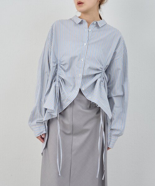 シルエットの変化を楽しめるギャザーブラウス フロントにギャザーデザインを施しており、一枚で華やかに着映えするアイテムです。 ビッグサイズのシャツですが ギャザーを絞ることでドレープがでるのでメリハリがでます。 着丈も長いので、今季おすすめのバイカーショーツやハーフパンツとのスタイリングもおすすめです。 - - - - - - - - - - - - - - - 透け感:なし 裏地:なし 伸縮性:なし 光沢感:なし 生地の厚さ:普通 - - - - - - - - - - - - - - - 【注意事項】 ※撮影環境により、光の当たり具合で色味が違って見える場合があります。あらかじめご了承下さい。 ※画像はサンプルの為、実際にお届けする商品と仕様が異なる場合がございます。 ■「商品のお気に入り登録」で ハートマークをクリックし、お好きなカラーを選んでお気に入りに登録すると 入荷情報や残り1点の通知、完売カラーの再入荷、セール情報などを受け取ることができます。 登録して頂いた商品だけが対象となる、あなただけのタイムセールが開催されることも! ■「ブランドのお気に入り登録」で 新商品や再入荷など、いち早くSHENERYのお得な情報を 受け取ることができますので、ご登録をおすすめします!