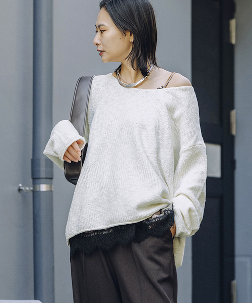 JOURNAL STANDARDトレンドに左右されない王道ニット。程よい首の開きはカットソーとレイヤードするもよし、キャミソールやタンクトップをチラ見せするもよし。その日の気分次第でカジュアルにも綺麗めにも使える万能ニットです。緩めに編まれた生地は柔らかく、動きが出てくれるので着るだけでこなれ感が演出できます。不規則な節のあるネップ糸を採用することで、全体にポコポコと風合いのあるデザインに仕上がりました。※【fedit】シリーズは下記品番になります【fedit】ヘンプコットンフライスヘンリー(品番:26070400910010)【fedit】スラブカノコプルオーバー(品番:26080400904010)【fedit】エアリーコットンシャツ(品番:26050400902010)【fedit】キョウネンキャンバスワイドパンツ(品番:26030400915010)**********************透け感:ホワイトややあり裏地:なし伸縮性:あり光沢感:なし生地の厚さ:普通**********************【スタッフ着用コメント】《スタッフO》年齢:30代前半/身長:158cm/体型:普通/普段サイズ:M/着用サイズ:FREEサイズ感:リラックス感あふれるサイズ感。ネックの開きも絶妙にすっきり見えする開きです。素材感:やわらかいコットンナイロン素材着心地:肌触りが良く、柔らかくて着やすいです※あくまでも個人の感想です。**********************※カラーによって取り扱いが異なります。※取り扱いについては、商品についている取扱表示にてご確認下さい。※照明の関係により、実際よりも色味が違って見える場合があります。またパソコン・スマートフォンなどの環境により、若干製品と画像のカラーが異なる場合もございます。※商品の色味は、商品アップ画像をご参照ください。本体:手洗い可能
