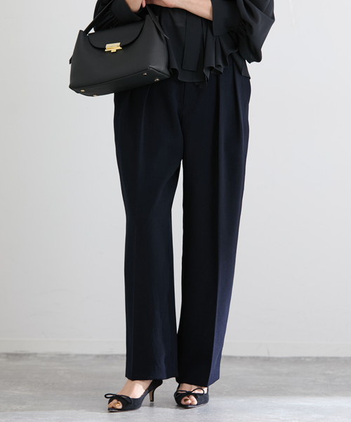 【2026SS】IENA通年で活躍する、程よい肉感と伸縮性を備えたジョーゼット素材を使用したパンツ。ウエスト後ろはゴム仕様で、長時間の着用でもストレスフリーの穿き心地です。素材には軽い水滴をはじきやすい加工を施しており、突然の弱い雨にも対応。生地の隙間を完全にふさがない加工のため通気性が保たれ、蒸れにくいのも嬉しいポイントです。(※効果は永久的ではなく、洗濯を繰り返すと徐々に低下します。)機能性と快適さを両立しつつ、きれい見えするシルエットが魅力。オフィシャルなシーンからカジュアルな日常使いまで、幅広く頼れる万能な一本です。【&NAVY】コンセプトは、Intelligence。綺麗なフォルムと機能性、そして特別な可愛らしさと多様性を大切にしてきました。今年のテーマはComfort Ceremony──知性を纏い、無理をしない。快適で、頼れるネイビーを提案します。汎用性は、すでに当たり前となったセレモニー服。今年求めるのは、きちんと感を保ちながら長い一日を安心して過ごせる快適さ。ベーシックと遊びのバランスをデザインしながら、IENAのニュートラルカラー「NAVY」を中心にTPOを問わず選びたくなるコレクションです。※シリーズもございます。&NAVY シアーピンタックスカート (品番: 26060900693010 ) &NAVY ツィーディーパンツ (品番: 26030900698010 ) &NAVY メランジツイルギャザーワンピース (品番: 26040900697010 ) &NAVY ジョーゼットペプラムブラウス (品番: 26051900694010 ) &NAVY オーガンジージャガードタックブラウス (品番: 26051900696010 ) &NAVYシアーボウタイブラウス (品番: 26051900692010 ) &NAVY ツィーディーサッシュジレ (品番: 26010900691010 ) &NAVY ツィーディーダブルジャケット (品番: 26010900690010 )**********************透け感:なし裏地:あり伸縮性:なし光沢感:なし生地の厚さ:普通**********************※取り扱いについては、商品についている品質表示でご確認ください。※こちらの商品は、IENAでの取り扱いになります。直接店舗へお問い合わせの際はIENA店舗へお願い致します。※照明の関係により、実際よりも色味が違って見える場合があります。またパソコン・スマートフォンなどの環境により、若干製品と画像のカラーが異なる場合もございます。予めご了承ください。※商品の色味は、商品アップ画像をご参照ください。本体:手洗い可能