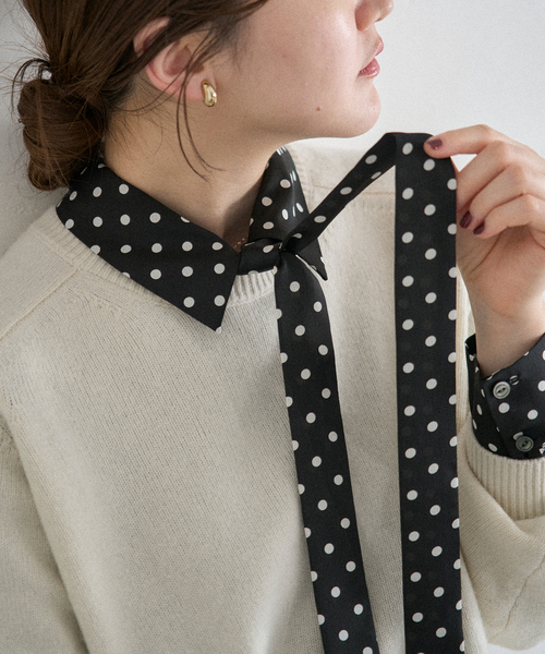 【2026SS】IENA※こちらの商品は、品番:24051900991040・24051900991140・25051900929030・25051900929130の追加品番です。※WEB限定追加になります。店舗への入荷予定はございません。※ネイビー(040)は品番:25051900929130で販売中です。※若干の仕様変更がある場合がございます。ご好評につき、4回目の追加生産が決定!ワードローブに欠かせないベーシックなボウタイブラウス。とろんとした落ち感と上品な光沢感のあるサテン地に、IENAらしい配色のドットを乗せました。ドットのサイズと配色にまでこだわったオリジナル素材になっております。タイをリボンにしたりネクタイ風にしたり、外してシンプルな襟付きブラウスとして着たり、様々なアレンジがお楽しみいただけます。前立てにしのばせたリボンテープもちょっとしたときめきポイント。ニットやスウェットとのレイヤードはもちろん、中にタートルネックを重ねたりジャケットのインナーとしても重宝する一着。オンオフでシーンを問わずお使いいただけるブラウスです。**********************透け感:なし裏地:なし伸縮性:なし光沢感:ややあり生地の厚さ:普通**********************※取り扱いについては、商品についている品質表示でご確認ください。※こちらの商品は、IENAでの取り扱いになります。直接店舗へお問い合わせの際はIENA店舗へお願い致します。※照明の関係により、実際よりも色味が違って見える場合があります。またパソコン・スマートフォンなどの環境により、若干製品と画像のカラーが異なる場合もございます。予めご了承ください。※商品の色味は、商品アップ画像をご参照ください。本体:手洗い可能