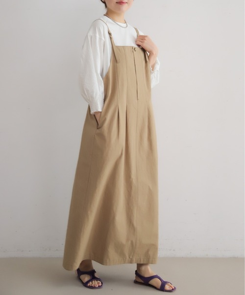 【NOMBRE IMPAIR ノンブルアンペール】 2026 Spring Collection ■すっきり見えを叶える、大人のリラックスジャンスカ 綿麻のナチュラルな風合いをいかした、ゆったりとしたシルエットのジャンスカ。 体のラインをカバーしつつ、華奢なストラップやステッチがアクセントに。 後ろはフィッシュテールのカッティングで、動くたびにすらりとした印象に。 カットソーやニットを合わせて、季節の変わり目にも軽やかに着られる一枚です。 ■Coordinate 柔らかなカラーのカットソーを合わせると、ナチュラルな素材感が引き立ち上品な印象に。 レースやシアーのインナーを重ねれば、華やかさのある女性らしい着こなし。 季節を問わずレイヤード次第で幅広く活躍し、さまざまなシーンで頼れるアイテムです。 洗濯:手洗い可 ※画像の商品はサンプルです。 実際の商品と色味、仕様、サイズ等が若干異なる場合がございます。 ※工場の生産の都合上、納期が変更になる場合がございます。 発送日の前後については予めご了承ください。