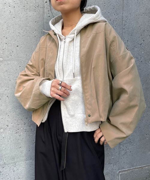 【程よいゆるさの今っぽシルエットジャケット】ソフトでマットな質感が魅力のピーチ素材を使用したボンバージャケットです。ほんのり起毛した表面が上品さを引き立て、カジュアルアウターながら女性らしく着こなせる一枚です。程よくゆとりを持たせたシルエットで、厚手のニットやスウェットを合わせてもすっきり◎軽くて着心地もよくデイリー使いしやすい万能ブルゾンです。スカートにもパンツにも馴染むバランスで、秋から春までロングシーズン活躍します。【商品ポイント】・ピーチタッチ素材の上品なマット質感・ほどよいゆるシルエットで今っぽいバランス・スカート・ワンピ・デニムまで幅広く相性◎----------------------------------------------------■商品特徴洗 濯 方 法 :家庭洗濯不可(ドライクリーニング可)裏 地 :あり透 け 感 :なし伸 縮 性 :なし光 沢 感 :なし生地の厚さ:普通----------------------------------------------------■素材表地: ポリエステル90%, ナイロン10%裏地: ポリエステル100%----------------------------------------------------※着用、お取り扱いの際は、商品についている品質表示とアテンションタグを必ずご確認下さい。※商品タグに記載されている商品名がWEBでの表記名と異なる場合があります。※実際の商品と仕様、加工、サイズが若干異なる場合がございます。※照明の関係により、実際よりもやや明るく見える場合がございます。またパソコンなどの環境により、若干製品と画像のカラーが異なる場合もございます。予めご了承くださいませ。【お気に入り登録】してお得な情報をCHECK!!・「商品のお気に入り登録」で再入荷通知や、ラストの通知、セール通知も受け取ることができます。・「ブランドのお気に入り登録」で新商品や再入荷など、お得な情報を受け取ることができます。