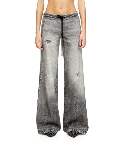 洗練されたトロンプルイユデザインのデニムパンツ ジョグジーンズ「2078 D-AINTY JOGG」。デニムのダメージをデジタルグラフィックプリントで再現した非常にディーゼルらしいテキスタイルです。スポーティな雰囲気を感じさせるローウエスト&ワイドレッグも特徴的。ややドライな質感のため、ストレスフリーなはき心地を楽しめます。