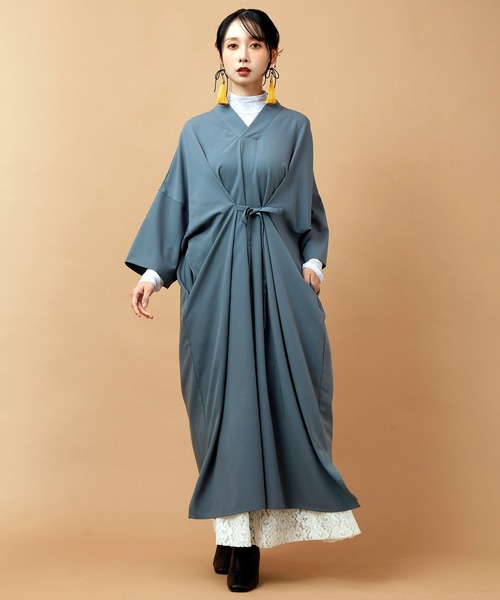 和の情緒を纏う、上品な色合いの無地ワンピース。 さらりとした肌ざわりのポリエステルレーヨン生地を使用。 衿元のデザインが着物を想わせます。 ウエスト前の紐を結ぶと柔らかなドレープが生まれ、大人な和モダンスタイルに◎ シンプルな無地でコーディネートに取り入れやすく、日常使いにもおすすめのワンピースです。 ◆カヤ◆ 古くから伝わる日本の伝統と新しい文化の融合。 「新しいカタチの日本」に出会える倭物ブランド【カヤ】 「文明開化」をテーマに、倭モダンで色彩あふれる刺激的な和雑貨を提案していきます。 ※こちらの商品は1点1点職人による手作りとなります。その為、形や色合いなど若干異なる場合がございます。あらかじめご了承ください。※屋外での撮影画像は、光の当たり具合で色味・カラーが違って見える場合がございます。商品のカラーは、スタジオ撮影の画像をご参照ください。 Amina Collection Co.,LTD.