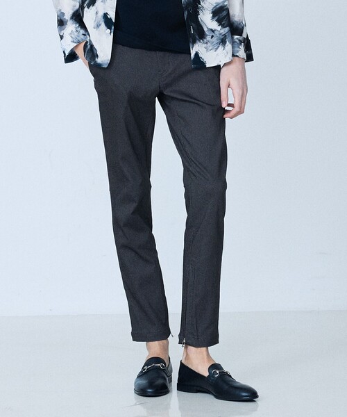 Twill Jacquard Skinny【素材】ツイル調の軽量ハイストレッチ素材。強力な伸縮と復元力で動きに追従し、一日中ノンストレスの穿き心地です。また、さらりとしたドライタッチ、シワになりにくいイージーケア素材で洗濯後も型崩れしにくく、デイリーに着用いただけいます。見た目にも配色が効いたブランドらしい素材感です。【デザイン】膝に向かうダーツが動きやすさと立体感を両立。センタークリースなしのクリーンな表情に、スピンドルウエストのイージーさを加えた、今の気分のテーパードスキニー。ウエストはスピンドルで気軽に調整。カジュアルに振れても上品見えする、使い勝手の良いフルレングス。また裾にはジップを施しており、シルエットの変化を楽しめます。【コーディネート】レザーやジャケット、シャツ合わせは勿論のこと、足元はジップを活かしヒールブーツと相性が良いです。