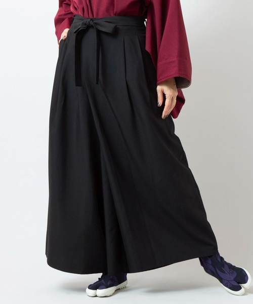 軽やかな穿き心地で和の色合いを愉しめる無地ワイドパンツ。 さらりとした肌ざわりのポリエステルレーヨン生地を使用。 前を斜めに重ね合わせたようなデザインと、大きめのタックを入れることで袴を思わせる上品なシルエットに仕立てました。 和装カジュアルなど様々なスタイルに合わせやすいパンツです。 ・ウエストゴム仕様 MAX~95cm ・両サイドポケット付き。 ・バックポケット付き。 ・ウエストのリボンベルトは取り外しも可能です。 ◆カヤ◆ 古くから伝わる日本の伝統と新しい文化の融合。 「新しいカタチの日本」に出会える倭物ブランド【カヤ】 「文明開化」をテーマに、倭モダンで色彩あふれる刺激的な和雑貨を提案していきます。 ※こちらの商品は1点1点職人による手作りとなります。その為、形や色合いなど若干異なる場合がございます。あらかじめご了承ください。 Amina Collection Co.,LTD.