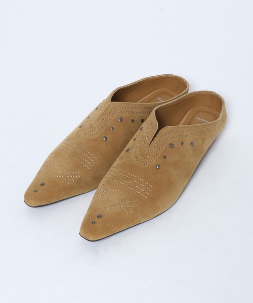 ーーーウエスタンデザインがトレンド感抜群★足先が綺麗に見えるシルエットにこだわったミュールーーー■Designウエスタンディティールが今年らしいミュール。スタッズも控えめで、モードにもカジュアルにも幅広く合わせやすいデザインに仕上げました。サッと着脱しやすいつっかけタイプながら甲をしっかり覆うので、脱げにくく歩きやすさも◎寒い時期から春先まで長く楽しめるアイテムです。■Stylingシンプルなスタイリングのさりげないアクセントに♪ソックス合わせもしやすく、幅広いスタイルに馴染みます、フルレングスのパンツからつま先をのぞかせるスタイルも◎-INFORMATION-◆お買い物をよりお楽しみいただく為に『♡』をクリックしてお気に入り登録がおすすめ!・完売カラーの再入荷通知や、ラスト1点の通知、セールになった際も通知を受け取ることができます★◆ブランドのお気に入り登録新商品や再入荷など、お得な情報を受け取ることができますので、是非ご登録ください♪※屋外の光や照明の当たり具合で、実際の商品の色味とカラー別画像の色味に違いが発生する場合がございます。 商品の色味はスタジオ撮影の詳細画像にてご確認ください。