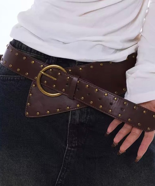 【 BARELY BLUE / ベアリーブルー 】 ワイド スタッズ ベルト 存在感のあるワイド幅に、スタッズをあしらったデザインベルト。 シンプルなコーデにプラスするだけで、スタイリングのアクセントになります。 ビッグバックルがウエストラインを引き締め、メリハリのあるシルエットを演出。 ワンピースやニットのウエストマークはもちろん、 パンツやスカートに合わせてもバランスよく決まります。 程よくエッジの効いたデザインながら、 使いやすいカラー展開でデイリーに取り入れやすいのもポイント。 いつものコーデをアップデートしてくれる、主役級のワイドベルトです。 #BARELY BLUE 淡いグレーのようなブルーのような、 絶妙に馴染んでくれるカラー、BARELY BLUEらしいアイテムをあなたに。 トレンドライクなバッグや洋服など、枠にとらわれないUNISEXセレクトブランド。 ※撮影・モニター環境等により実際の商品の色味と異なって見える場合がございます。 【インフォメーション】 ◆商品のお気に入り登録 完売カラーの再入荷通知を受け取ることができます。 ぜひご登録ください♪ ◆ブランドのお気に入り登録 新商品や再入荷などのお得情報を受け取ることができます。 ぜひご登録お願いします