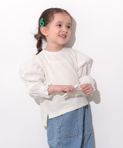 ほんのり透け感のある、異素材使いのボリュームパフスリーブがガーリーデザインな、長袖Tシャツ ・デイリーに着こなしやすい、身頃は天竺、袖にはアイロン要らずのガーゼワッシャー素材を使用。 ・裾は前後差をつけたラウンドカットで、動きやすさとおしゃれさを両立。元気に動き回るキッズにもぴったりです。 ・前後差をつけたスリットデザインで、シルエットにアクセントをプラス。 ・パンツにもスカートにも合わせやすい、程よいゆとりのあるシルエット ・モデル身長:107cm/着用サイズ:110サイズ 【気になる商品はお気に入り登録がおすすめ】 ▼商品お気に入り登録完売カラーの再入荷通知や、ラスト1点の通知、セール通知などお得な情報を受け取ることができます。 ▼ショップお気に入り登録新商品や再入荷など、OCEAN&GROUND の最新情報を受け取ることができます。