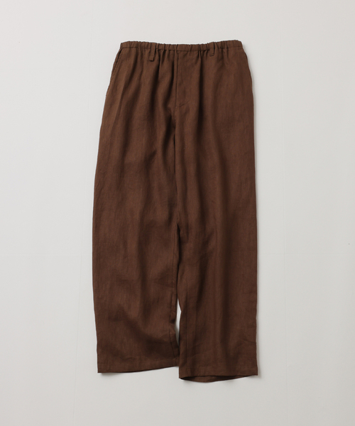 ≪2026SS FOLL Collection≫deep washed summer relax pants“軽さと立体感を纏う。”夏のリラックススタイルを、大人らしい佇まいで成立させることを目的に設計したサマーリネン素材のイージーパンツ。【特徴】《素材と表情》・太番手のカジュアルな麻糸でざっくりと織り上げたキャンバスを採用・表面薬剤加工、揉み洗い、柔らかなプレスを施すことで、自然な落ち感と空気を含むような軽やかな表情を実現・ダークネイビー/ダークブラウンのニュアンスある2色展開で、大人の夏に馴染む奥行きのある色調《仕立てと構築》・今期はジャケットとのセットアップバランスに合わせてシルエットを再構築・テーパードを緩めることで、歩行や動きに応じて空気をはらみ、アウトラインが立体的に見える設計・ヒップポケットは玉縁仕様のまま、アクセスしやすい位置へわずかに調整し利便性を向上《着用感と汎用性》・穿き込むほど風合いが増し、身体に馴染む素材特性・Tシャツやシャツとの組み合わせで1枚着として成立しながら、同素材のジャケットとのセットアップにも対応・リラックスパンツでありながらラフに寄りすぎない佇まいで、日常から夏の外出シーンまで幅広く活躍“余裕と品が共存する、夏の定番ボトムス。”力を抜いた装いの中に、静かな品質と奥行きを添える一本です。※取り扱いについては、商品についている品質表示でご確認ください。※照明の関係により、実際よりも色味が違って見える場合があります。またパソコン・スマートフォンなどの環境により、若干製品と画像のカラーが異なる場合もございます。※商品の色味は、商品アップ画像をご参照ください。