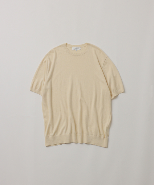 ≪2026SS FOLL Collection≫ cotton cashmere knit tee(mix) “しなやかさが日常に溶け込む。” 毎シーズン夏の定番となりつつある、アップデート版コットンカシミヤニットTシャツ。 【特徴】 《素材と質感》 ・コットン95%、カシミヤ5%の混紡で、圧倒的な肌触りと軽やかな着心地を実現 ・TOP段階での染色により、深みのある色味と高い白度を両立 ・16G天竺編みで薄すぎず、Tシャツ感覚で日常に馴染むソリッドな質感 《仕立てと構築》 ・袖をやや長めに設定し、着用時に自然で馴染んだ印象に ・ベーシックなシルエットながら、細部の編み目やバランスにこだわり上品さをプラス ・ソリッドでニュートラルな色味で、幅広いスタイリングに対応 《着用感》 ・コットンの爽やかさとカシミヤの柔らかさを兼ね備え、長時間の着用でも快適 ・一枚着でもインナーとしても活躍 ・日常のカジュアルスタイルから上品なコーディネートまで、幅広く対応 肌に触れる瞬間から心地よさを実感できる、 FOLLが追求した夏のニットTシャツです。 ※取り扱いについては、商品についている品質表示でご確認ください。 ※照明の関係により、実際よりも色味が違って見える場合があります。またパソコン・スマートフォンなどの環境により、若干製品と画像のカラーが異なる場合もございます。 ※商品の色味は、商品アップ画像をご参照ください。