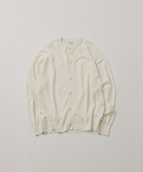≪2026SS FOLL Collection≫ summer linen wardrobe cardigan “抜け感と品を併せ持つニット。” 春先から初夏まで、1枚でも羽織りでも自然に着られることを目指して設計したクルーネックカーディガン。 【特徴】 《素材と表情》 ・リネンの中では細番手に当たる48番手双糸(48/2)を使用 ・編地は可能な限り薄手でありながら、ダレにくいバランスに仕上げ、通年で着用可能 ・淡い色の表現が難しいリネンながら、低温での長時間染色によりレッドやスモークグリーンなどの中間色も再現 《仕立てと構築》 ・スラックス同様に通年着用できる軽量ニットを模索し、新型として設計 ・リラックス感を残しつつ、1枚でボタンを全て留めてもシャツ感覚で成立するアウトライン ・インナーにゆとりのあるTシャツを合わせても自然に着られるアームホール設計 《着用感と汎用性》 ・春先から夏手前まで、1枚着としても羽織りとしても活躍 ・ボトムを選ばず、休日のカジュアルからちょっとした外出まで幅広く対応 ・編地の軽さと形の安定感により、季節の変化にも自然に寄り添う 季節を跨いで着用できるリネンニットとして、日常のワードローブに静かな品を添える一枚です。 ※取り扱いについては、商品についている品質表示でご確認ください。 ※照明の関係により、実際よりも色味が違って見える場合があります。またパソコン・スマートフォンなどの環境により、若干製品と画像のカラーが異なる場合もございます。 ※商品の色味は、商品アップ画像をご参照ください。