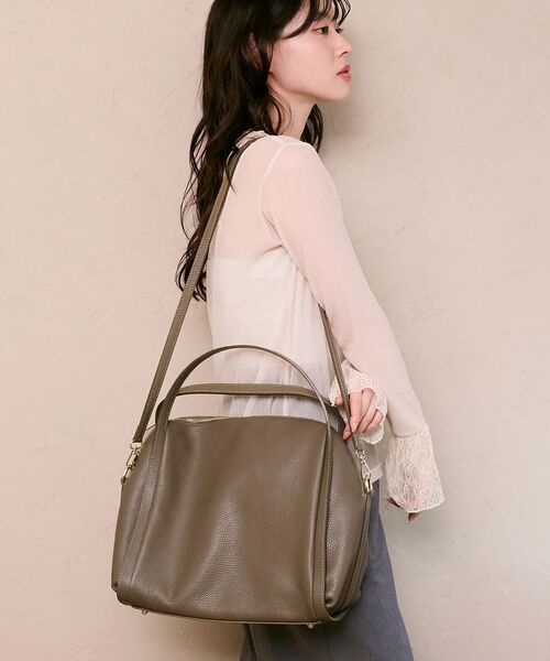 レザー素材を使用した、日常使いしやすいサイズ感のボストンバッグ。すっきりとしたフォルムながら、内外に5つのポケットや仕切りがあり、使い勝手バツグン◎ショルダーストラップが付属し、手持ちでも肩掛けでもシーンに合わせてお使いいただけます。