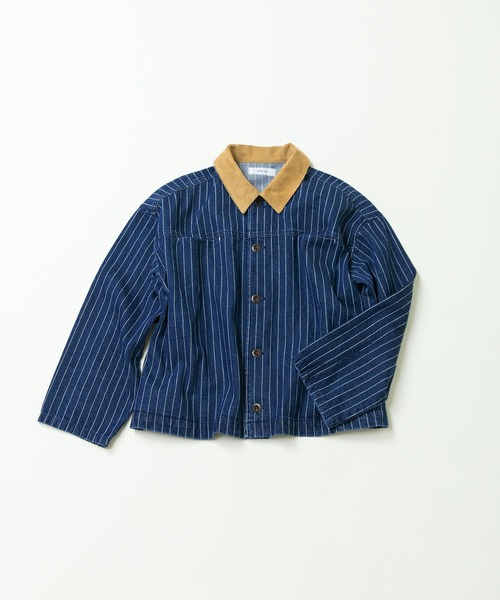 古着のカバーオールから着想を得た、異素材の組み合わせがめずらしいデニムアウター。重すぎない程良い厚みのデニムをベースに、襟部分には軽さのあるフェイクスウェードでちょっぴりハードな印象に。ネイビー(無地)のデニム生地にはアタリを出すボールバイオ加工を施し、着古したような雰囲気に仕上げました。ヒッコリーストライプは耐久性がありつつも、ポリエステル混の生地で柔らかく軽い着心地。存在感がありながらもスタイリングに取り入れやすい細めのピッチを選びました。ヨーク切り替えや両胸ポケット、バックタブのディテールを施したことで立体感が生まれ、ばさっと羽織るだけでもこなれた印象に。スウェットなど厚みのあるアイテムとも重ね着しやすいゆとりのあるサイジングで、季節の変わり目に活躍します。シンプルなカットソーや定番ボトムのチノパンツ、カーゴパンツと合わせてメンズライクなスタイリングの主役に。フリルやレースなど甘めのアイテムと合わせたミックスコーディネートもおすすめです。同素材でベスト(5001BZ003261)もご用意しております。--------------------透け感:なし裏地:なし伸縮性:なし光沢感:なしポケット:あり--------------------【素材の特性・お取り扱いの注意】・取り扱いの注意については取り扱い表示をよくご確認の上、着用をお願い致します。・インディゴ染料で染めていますので、洗えば洗うほど藍染め独特の鮮やかな色と風合いがお楽しみいただけます。・素材の特性上、着用時や汗・雨等で濡れた場合に色落ちし、他の衣料に色移りする事があります。時間が経つと取れにくくなる為、色移りした場合はすぐに洗って下さい。・襟のフェイクスウェード部分は乾摩擦・湿摩擦ともにインディゴ染料が移染しやすい為、洗濯時はボディ部分との摩擦が起きないように洗って下さい。・洗濯を繰り返すうちにインディゴ染料が襟に移染し、色が変色していきます。あらかじめご了承下さい。・襟部分が汚れた場合は濡れたタオルで拭き取り、なるべくボディ部分と接触しないように乾かして下さい。・お手入れの際は必ず単独洗いで洗濯して下さい。つけ置きや濡れたまま放置すると、襟部分や他の衣類に移染しますので速やかに自然乾燥して下さい。・ドライクリーニングは専門店にお願い致します。・強い日光や照明が長時間当たりますと変色の恐れがありますので、ご着用及び保管の際にはご注意下さい。色の変化は経年変化によるものですので、ご了承下さい。洗濯後は裏返しにした状態で、日陰で陰干しして下さい。※撮影画像は、光の当たり具合やモニターの環境により色味が違って見える場合があります。あらかじめご了承下さい。※画像はサンプルを着用しています。お届けする実際の商品と仕様、加工、サイズが若干異なる場合があります。ストライプのサンプルの画像から前身頃に脇ポケット袋布のダブルステッチが入ります。後ろタブの横幅と金具が変更になります。正しいものはネイビーの画像をご覧下さい。胸ポケットの位置が左右でそれぞれ中心側に2cmずれ、ヨーク切り替え位置が2.5cm下がります。ネイビーのサンプルの画像から胸ポケットの位置が左右でそれぞれ脇側に2cmずれます。
