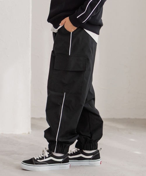 ライン入りで今っぽく。動きやすいキッズカーゴジョガーパンツ ■デザイン ・サイドラインがアクセントになるスポーティデザイン ・カーゴポケット付きで実用性も◎ ・裾ゴム入りで動きやすく、すっきりしたシルエット ・ユニセックスで使える万能ボトム ■素材 ・軽くて動きやすい布帛素材 ・外遊びにも対応できる丈夫さ ・オールシーズン使いやすい快適な素材感 ■コーディネート ・スウェットやパーカーと合わせてスポーティに ・シンプルトップスを合わせて韓国キッズ風にも◎ ・通園・通学・週末のお出かけにも最適 伸縮性:ウエスト、裾口のみあり 透け感:なし 裏地:なし ポケット:あり 生地感:ハリのあるポリエステル生地 注意点:Blackのみ素材の特性上、色落ちしやすいのでご注意下さい。 お洗濯方法によっては縮みや色あせの可能性あり。 ▼生地や素材の性質により2cm前後サイズ誤差が出る場合がございます。 ▼モデル着用写真は撮影環境により、多少実際のカラーと異なる場合がございます。 ▼色落ちの恐れがありますので、他のものと分けて洗って下さい。 ▼当商品は機械による生産の過程上、『生地を織る際の糸の継ぎ目』や多少の『ほつれ』、繊維の『混紡』、形やサイズに多少の『誤差』が生じる場合がございます。 ジュニア ボトムス ジョガーパンツ ライン カーゴパンツ ポケット ウエストゴム ポリエステル100 学校 男女兼用 ボーイズ ガールズ 男の子 女の子 120 130 140 150 COCA