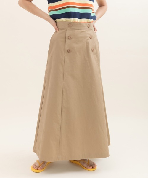 マリンテイストが爽やかな印象のAラインスカート。イカリモチーフの釦や後ろのレースアップがポイントで、トラディショナルな雰囲気が魅力的。素材は薄手の綿100%のツイルを使用することで、しなやかさがありつつもハリがあり、履くだけで綺麗なシルエットに。さり気ない光沢で程よくキチン感もありつつ、緩やかなAラインでデイリーに履きやすいデザインに仕上げました。カラーは定番で落ち着いたネイビーとナチュラルで柔らかい印象のベージュでの2色展開。さらりと肌離れの良い生地なので、春先から暑い時期まで気兼ねなく長いスパンで活躍します◎CHILD WOMANのイメージでもあるフレンチカジュアルな王道スタイルには欠かせないアイテムです。同シリーズでセーラーパンツ(0101PT003261)もご用意しております。※ベージュは今後販売予定です。--------------------透け感:なし裏地:なし伸縮性:なし光沢感:ややありポケット:あり-----------------------【素材の特性・お取り扱いの注意】・取り扱いの注意については取り扱い表示をよくご確認の上、着用をお願い致します。・雨や洗濯時に、濡れた状態で他の衣類等に10分以上密着させますと色移りする可能性がございますのでご注意ください。※撮影画像は、光の当たり具合やモニターの環境により色味が違って見える場合があります。あらかじめご了承ください。※着用の商品はサンプルで撮影しております。お届けする実際の商品と仕様、加工、サイズが若干異なる場合がございます。 ※ベージュとネイビーでイカリモチーフ釦のデザインが異なります。※ウエストサイズはレースアップ仕様の為、±2㎝程微調整が出来ます。